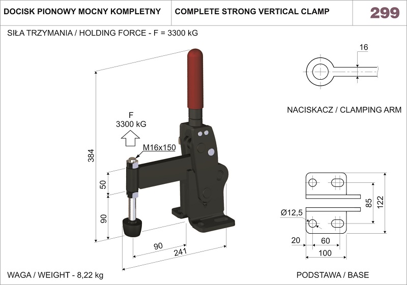 Docisk pionowy mocny kompletny o sile trzymania 2800 kG