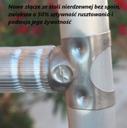 Zastosowanie złączy ze stali nierdzewnej bez spawów zwiększa o 50% sztywność rusztowania i podwaja jego żywotność.