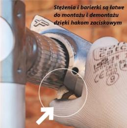 Stężenia i barierki są łatwe do montażu i demontażu dzięki hakom zaciskowym.