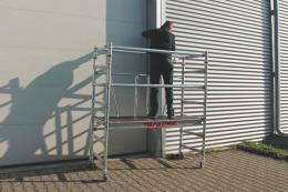 Pojedyncze rusztowanie jezdne o wymiarach 75 x 180 cm.