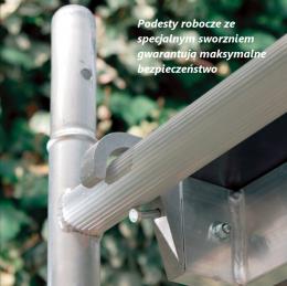 Podesty robocze wyposażone w specjalny sworzeń co gwarantuje maksymalne bezpieczeństwo pracy.