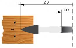 Frez z wlutowanymi nakładkami z węglika spiekanego (HW). Do zaprawek drewnianych rozmiaru 2. Narzędzie z limiterem prędkości posuwu (MAN) ułatwia pracę na obrabiarkach z posuwem ręcznym.