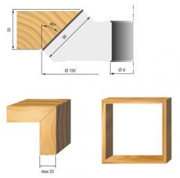 Głowica frezarska do wykonywania ukosów pod kątem 45⁰ do precyzyjnego łączenia elementów. Do frezowania drewna litego, płyt fornirowanych, paneli laminowanych, MDF, sklejki, etc.