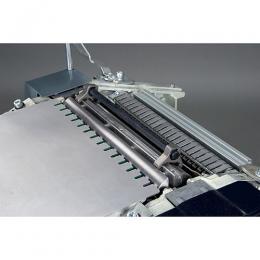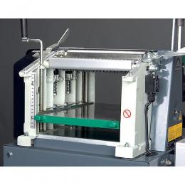 Automatyczny, równomierny posuw dzięki ryflowanym wałkom wprowadzającym wraz z zabezpieczeniem cofania się materiału.