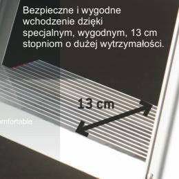 Wygodna i bezpieczna platforma dzięki stopniom o szerokości 13 cm.