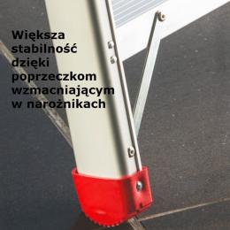 Wysoką stabilność i wytrzymałość drabiny zapewnia krzyżowe wzmocnienie tylnego elementu.