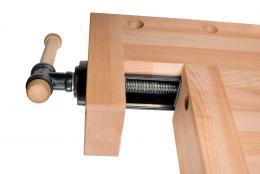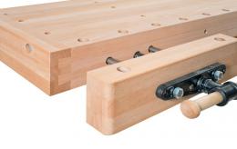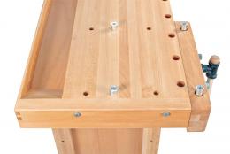 Stół stolarski PREMIUM MONSTER przeznaczony jest do dużych, profesjonalnych warsztatów. Łączenie na “jaskółczy ogon” zapewnia maksymalną sztywność oraz odporność i żywotność stołu. Masywny przedni docisk ma wymiar 520 mm długości i 70 mm szerokości. Boczny docisk jest wyposażony w specjalny mechanizm wykorzystywany w najlepszych stołach na rynku. Ten typ mechanizmu gwarantuje absolutnie precyzyjne ściskanie materiału. Wymiary docisku to 460 mm x 140 mm z trzema otworami na imaki. Blat stołu wyposażono w 15 otworów na imaki oraz 4 dodatkowe w krawędzi stołu. Przemyślane rozmieszczenie otworów umożliwia pionowy montaż elementu podczas obróbki. Szuflada pozwala na przechowywanie niezbędnych narzędzi zawsze pod ręką, a koryto na narzędzia sprawdza się doskonale zarówno jako przechowalnia materiałów i narzędzi jak i pomocny element w szybkim sprzątaniu stołu.