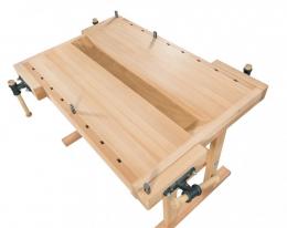 Stelaż wykonany jest z wysokiej jakości drewna bukowego i wyposażony jest w dwa przednie i dwa boczne imadła z centralnym ślimakiem i dwiema prowadnicami, zapewniającymi precyzyjne i pewne prowadzenie.