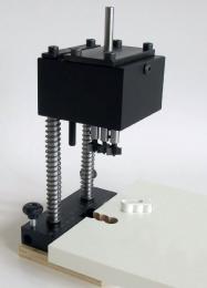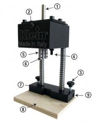 Jeśli zajdzie potrzeba zastosowania dodatkowego ogranicznika bocznego do zablokowania nawiercanej płyty, Trimatic jest wyposażony w otwór w podstawie (9), w który można włożyć pręt fi 10 blokowany pokrętłami (3).
