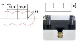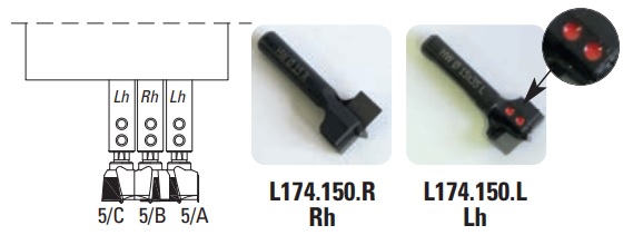 Do TRIMATICa 22.4 należy dokupić 2 frezy lewe zewnętrzne (zaznaczone dwiema czerwonymi kropkami) i 1 prawy.