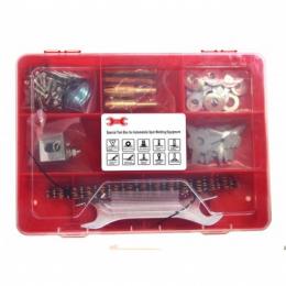 Cena urządzenia zawiera: wózek,przewód roboczy z pistoletem, przewód masowy z uchwytem mocującym, skrzynka z akcesoriami ( podkładki M10, M12, drut falisty, elektroda do drutu falistego, elektroda do zgrzewania, podkładki trójkątne, elektrody do bańkowania), wybijak z hakiem do podkładek M8-M12, wybijak z uchwytem do podkładek trójkątnych, ssawka gumowa do płytkich wgnieceń, rączka 6-pin do wyciągania drutu falistego, QUICK PULLER do Tecno Spotter 8000.