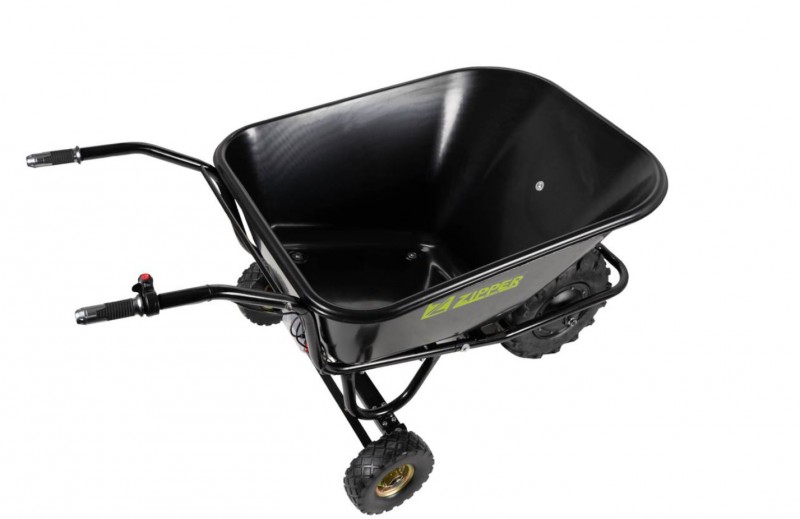 Taczka elektryczna Zipper ZI-EWB300-160L idealnie nadaje się do transportowania odpadów wokół domu i ogrodu. Model ZI-EWB150-100L jest jednym z elementów serii All-In-One, a jego bateria jest kompatybilna z innymi narzędziami Zipper (piły łańcuchowe, kosiarki, kosy, dmuchawy).