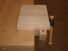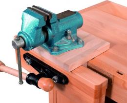Uniwersalny uchwyt PRO/HB-UD o rozmiarze 250x300 mm np: pod imadło do metalu. Pozwala na bardzo łatwe i skuteczne mocowanie / zdejmowanie z stołu stolarskiego, bez potrzeby wiercenia lub innej ingerencji w blat roboczy. Uchwyt wykonany jest z warstwowo klejonego buku o grubości 30 mm, co zapewnia mu maksymalną trwałość i wysoką użyteczność.